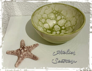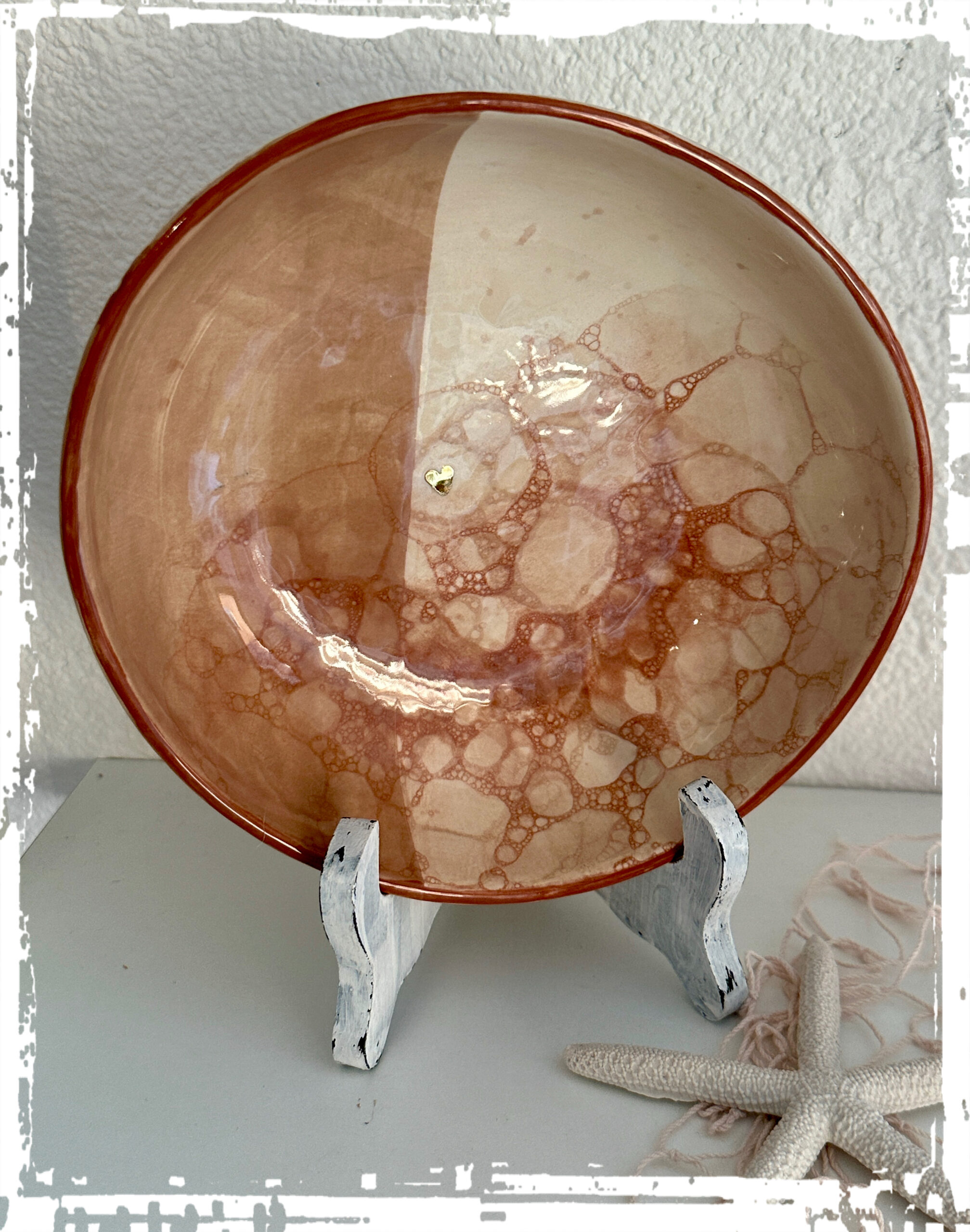 Schale mit Seifenblasentechnik und kl. Goldherz